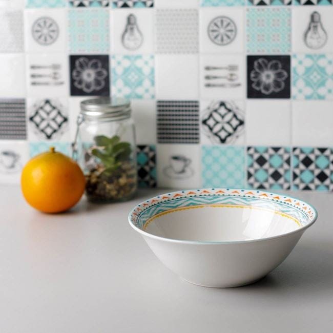 Bol din portelan cu model Aztec colorat. Fabricat din portelan, modelul de vara, liniile simple si finisajul impecabil va vor impresiona oaspetii cu orice ocazie.