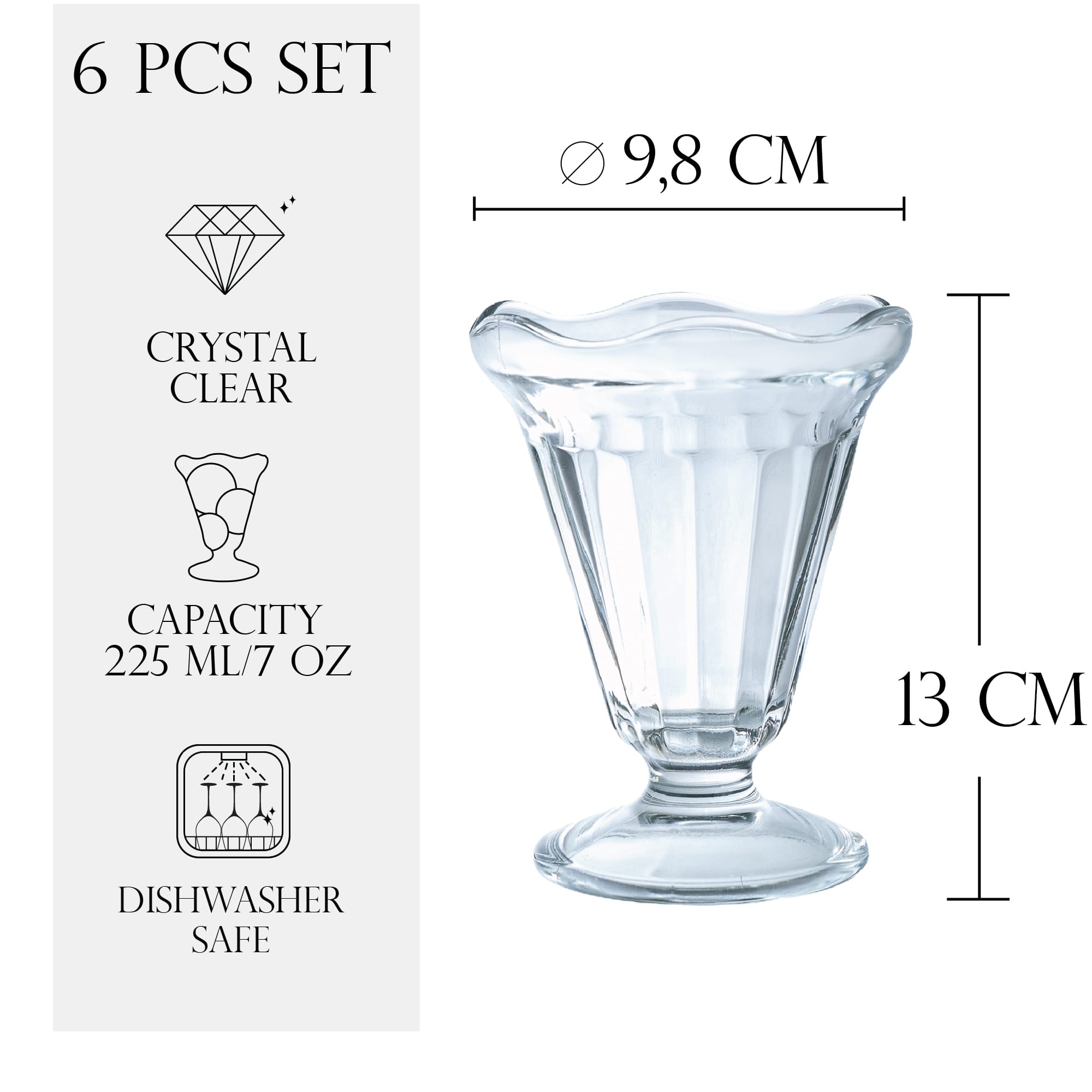 2. Capacitate Generoasă: Fiecare pahar are o capacitate de 225 ml, ideal pentru porții generoase de înghețată. 🍨
