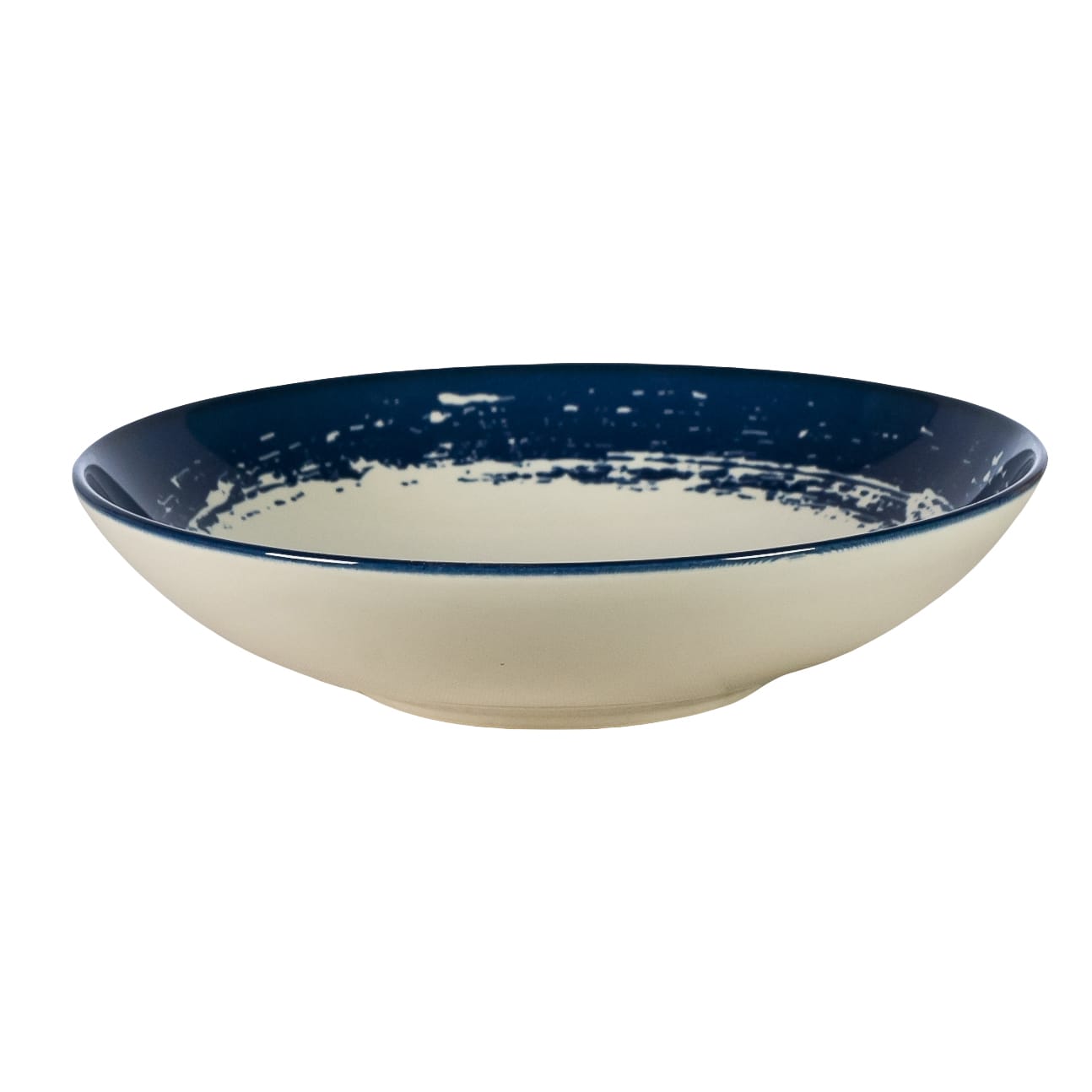 Farfurie adanca, 21 cm, Maritim, Cesiro, Fabricat in Romania, Alb Ivoire cu bluemarin