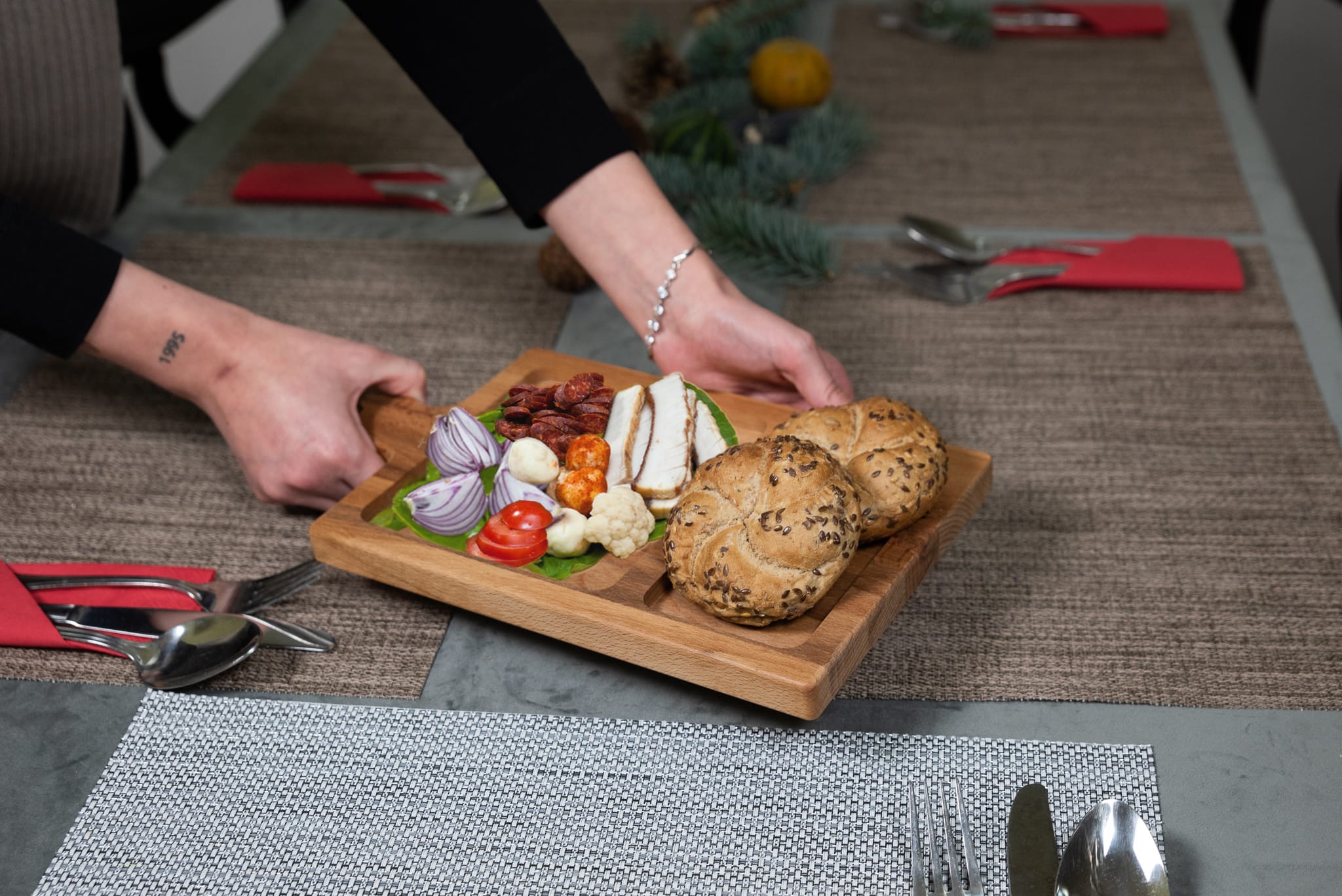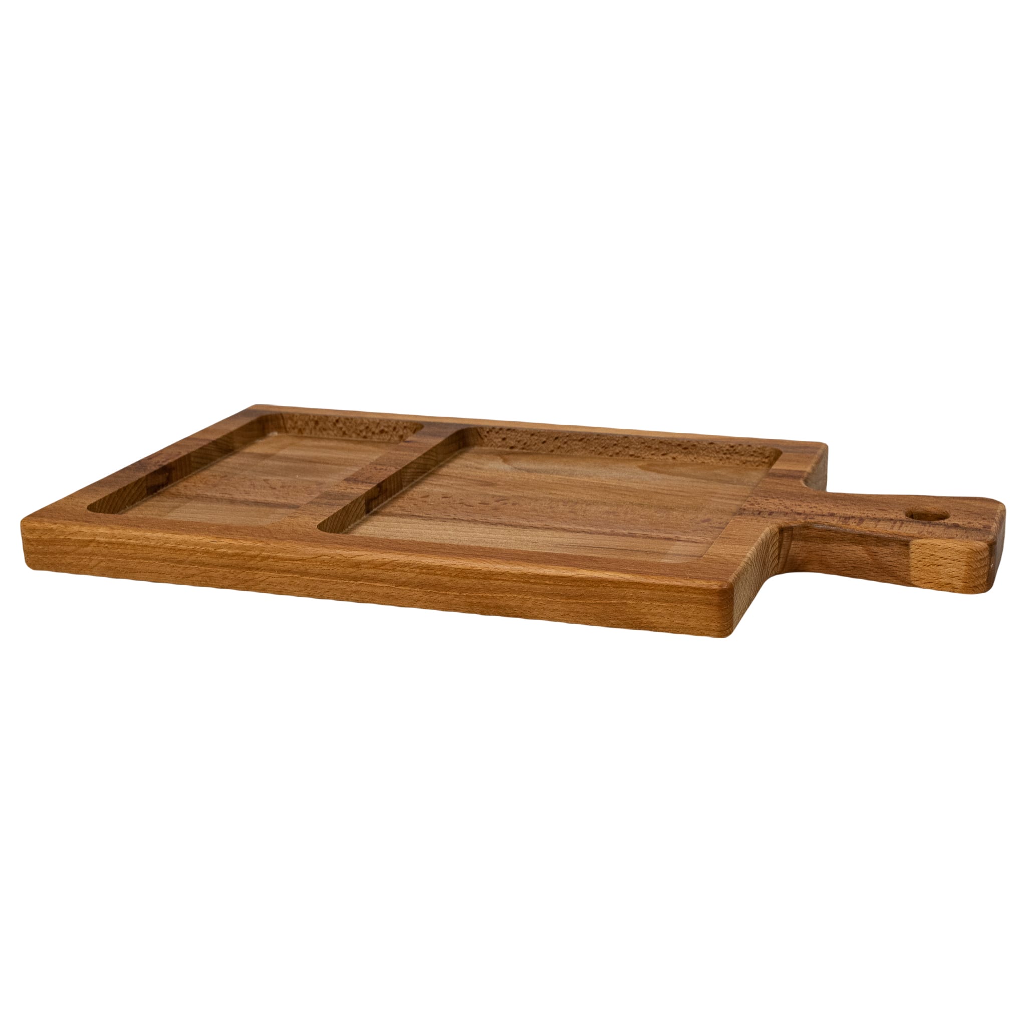 Platou de lemn, compartimentat cu maner, Cesiro, 350x185x25
