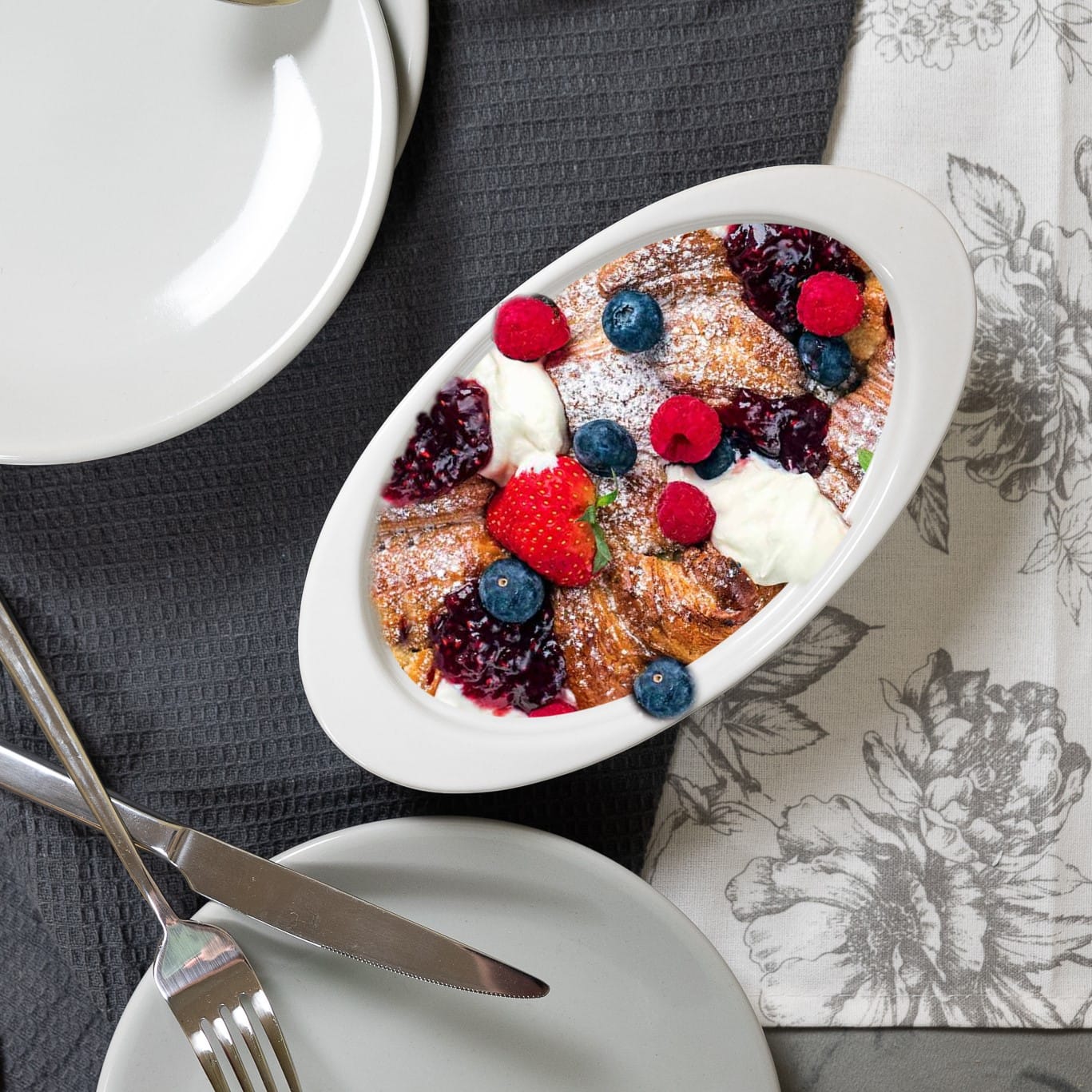 Un aspect remarcabil al acestui set de masa este reprezentat de vasul termorezistent, care adauga o nota de practicitate si versatilitate. Acest vas rezistent poate fi utilizat cu incredere in cuptorul cu microunde si cuptorul traditional, permitandu-ti sa gatesti si sa servesti in acelasi recipient.