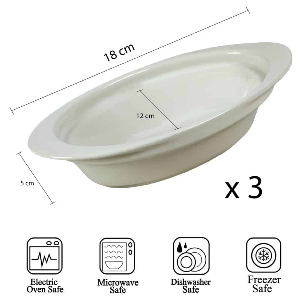 Set 3 vase termorezistente 18x12x5 cm, Alb adaugă eleganță în bucătărie. Rezistente la temperaturi ridicate, perfecte pentru gătit și servire. #BucătărieElegantă #GătitCuStil