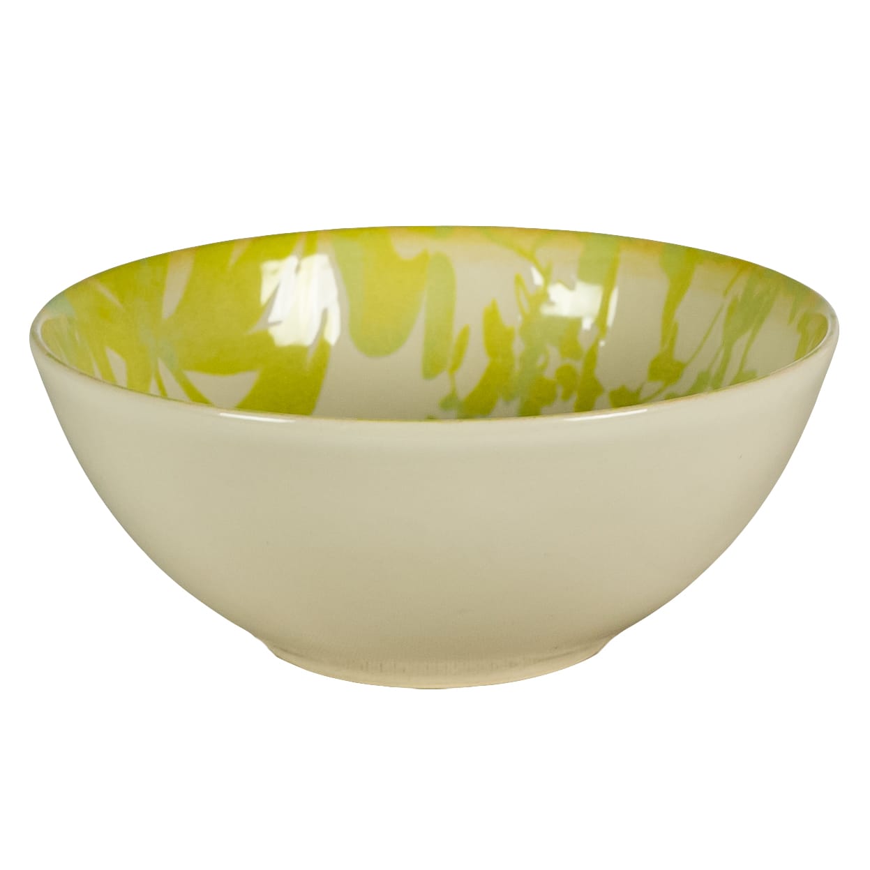 Set 4 boluri, 600 ml, Hawaii, Crem deschis cu frunze verzi-galbui