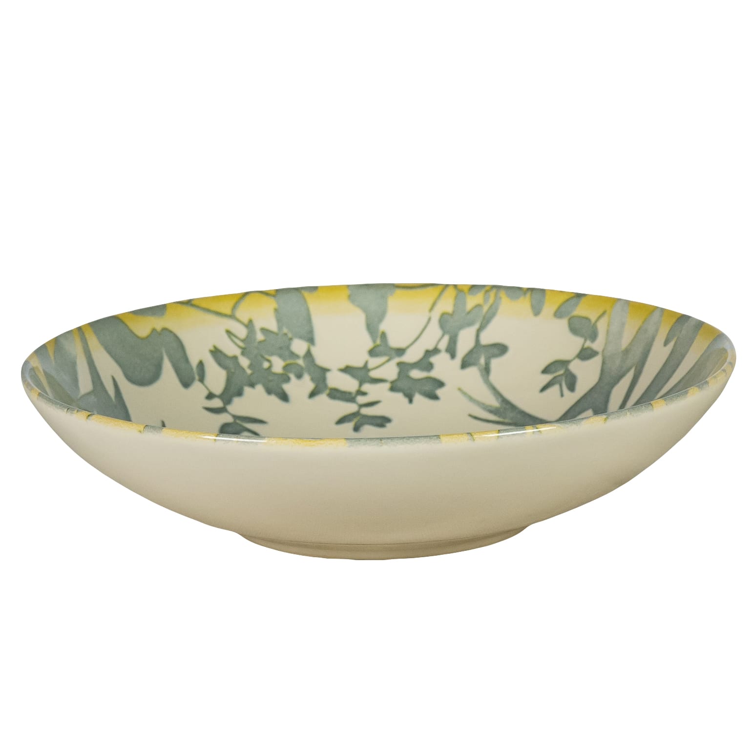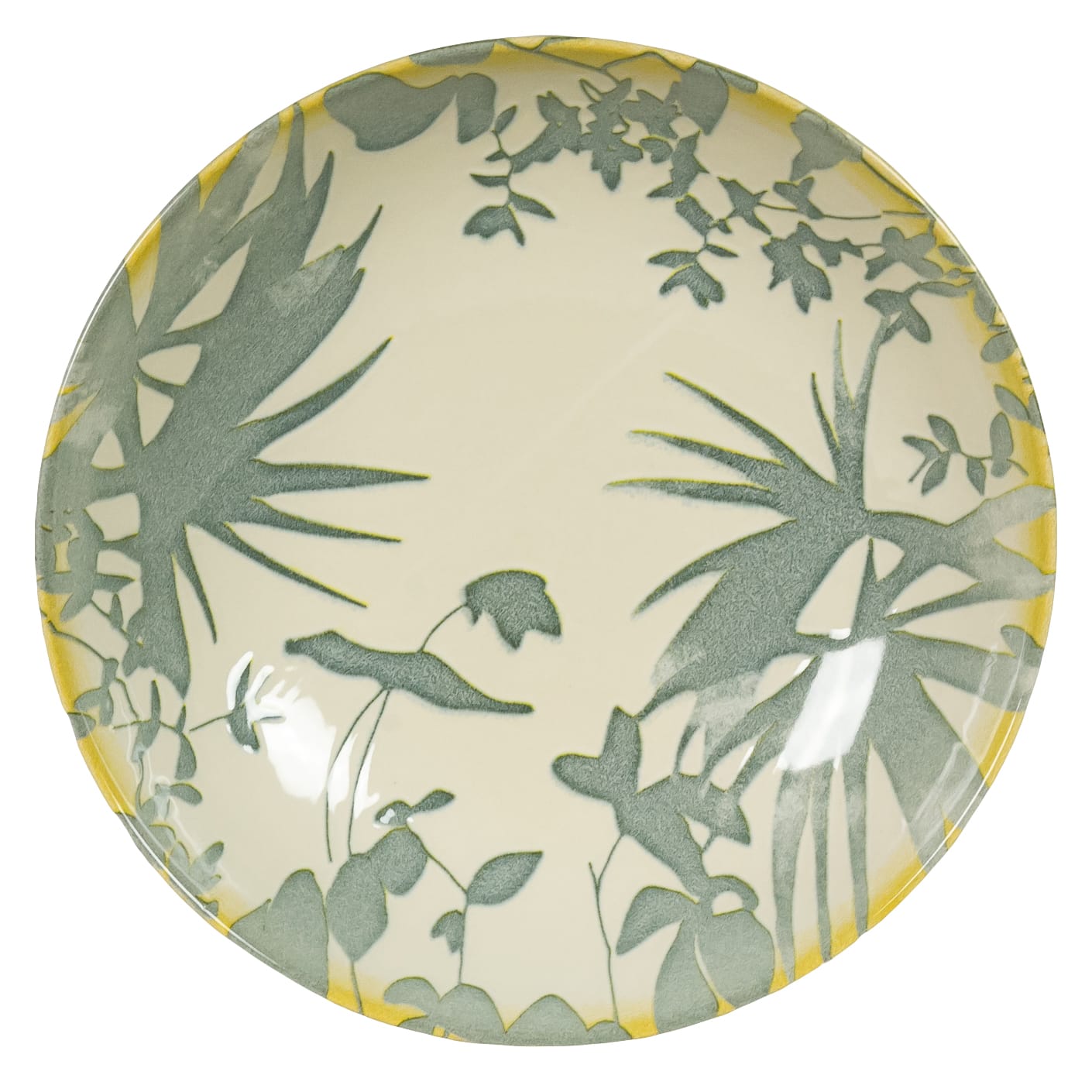 Set 4 farfurii adanci, 21 cm, Hawaii, Crem deschis cu frunze gri