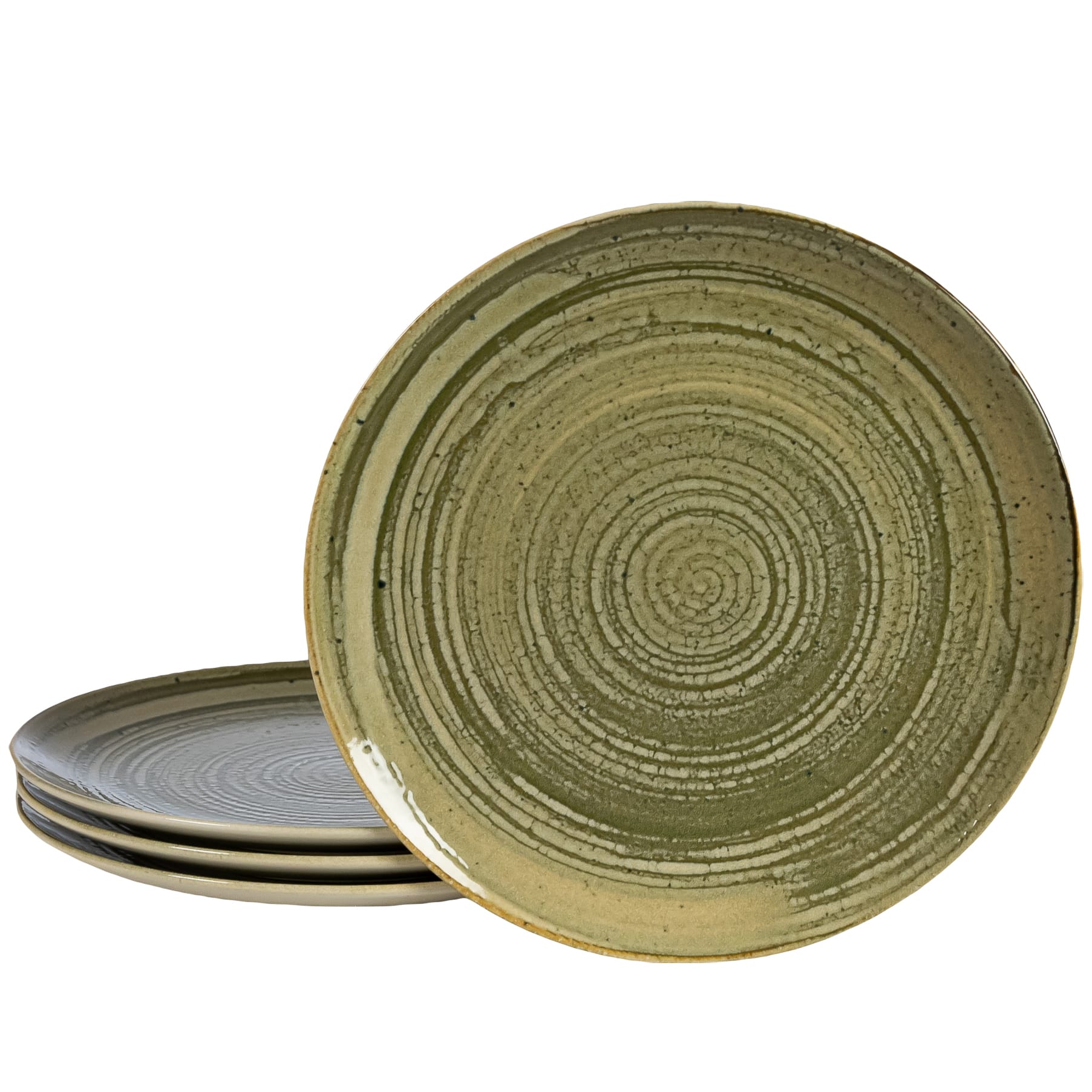 Set 4 farfurii intinse, 26 cm, Sand, Cesiro, Alb Ivoire si gri-verzui