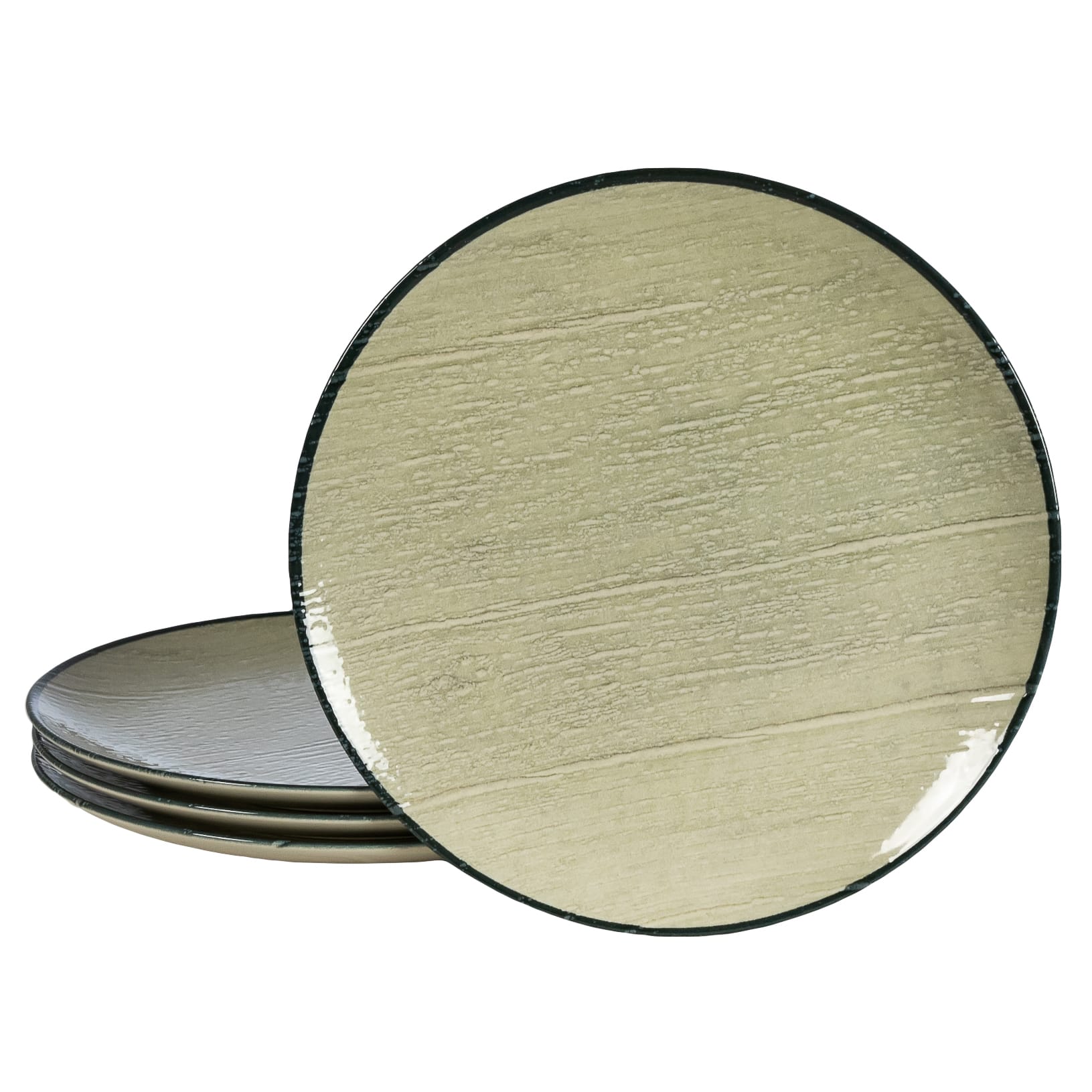 Set 4 farfurii intinse, 26 cm, Sand, Cesiro, Fabricat in Romania, Alb Ivoire cu margine neagra