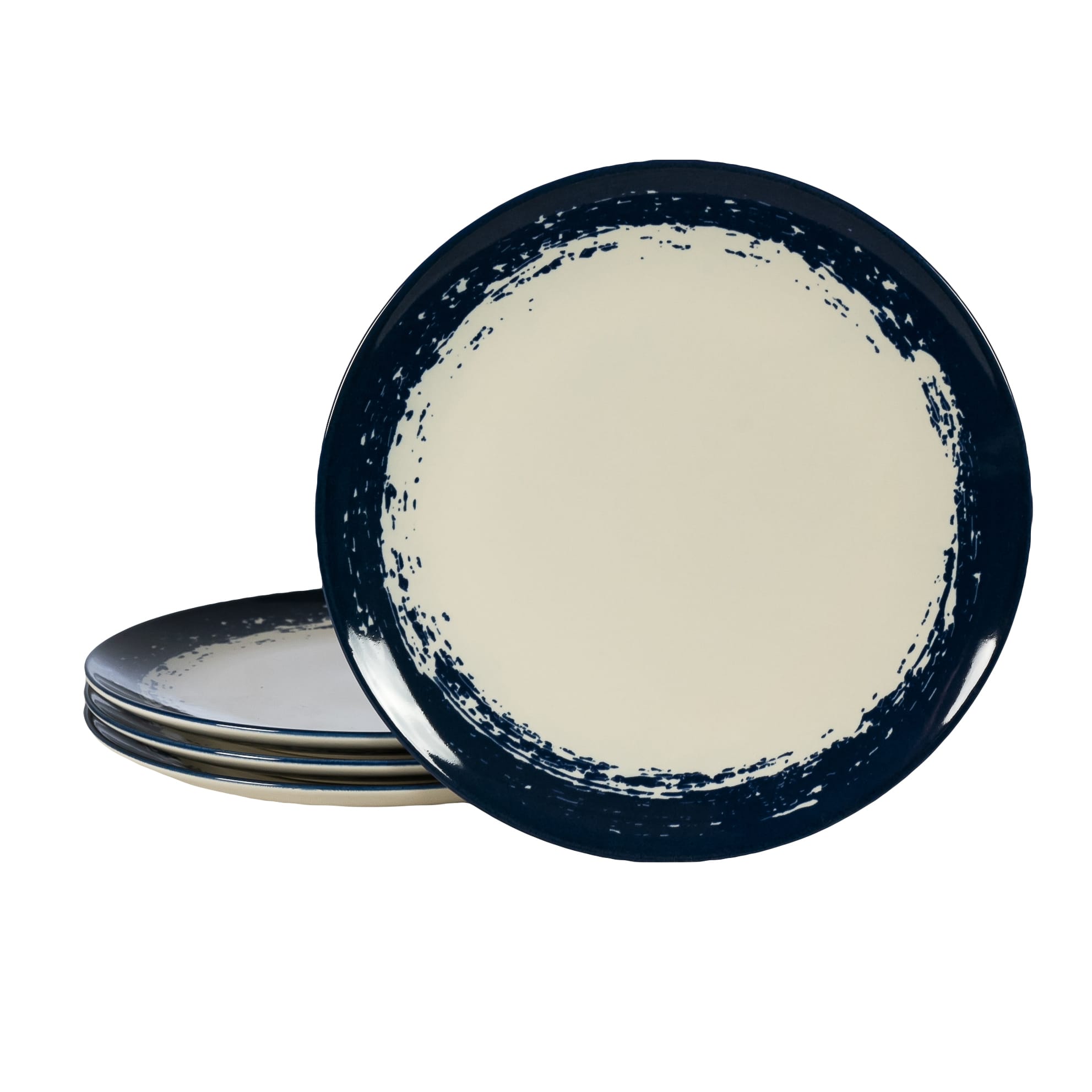 Set 4 farfurii intinsea, 26 cm, Maritim, Cesiro, Fabricat in Romania, Alb Ivoire cu bluemarin