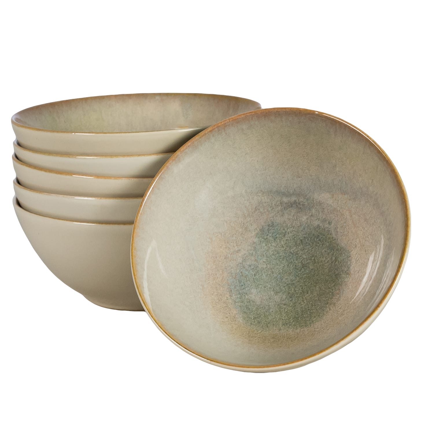 Set 6 boluri, 600 ml, Shell, Crem lucios cu margine maro