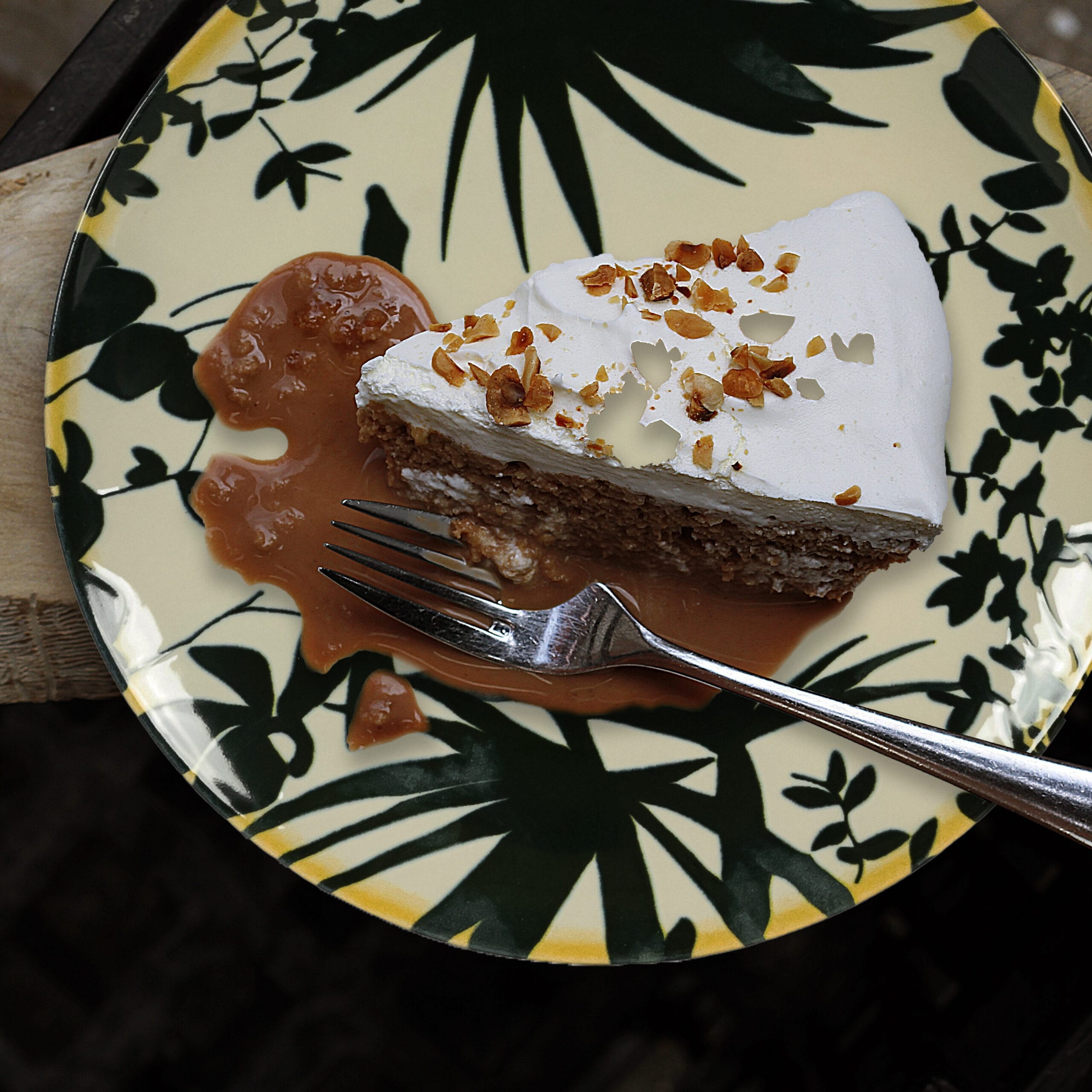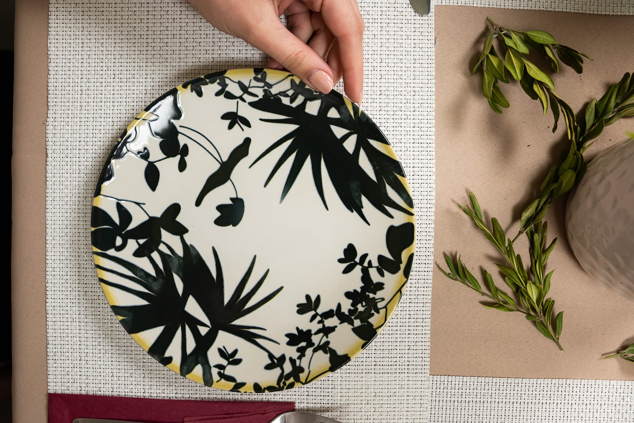 Set 6 farfurii desert, 20 cm, Hawaii, Crem deschis cu frunze negre