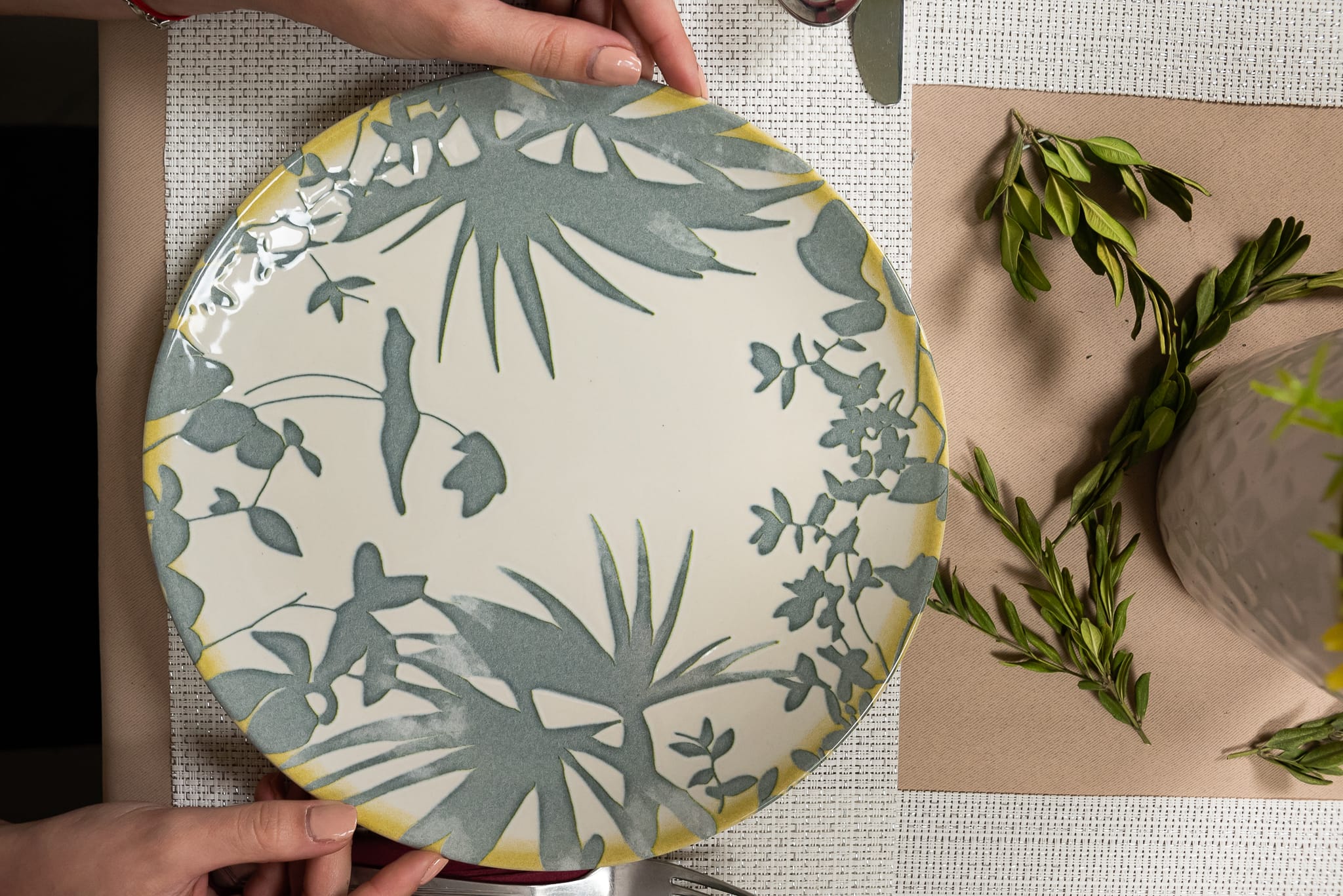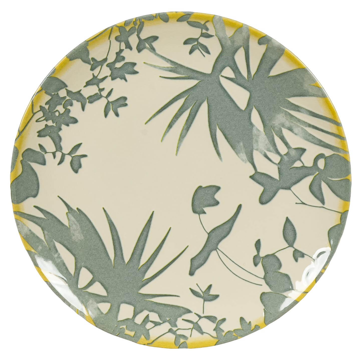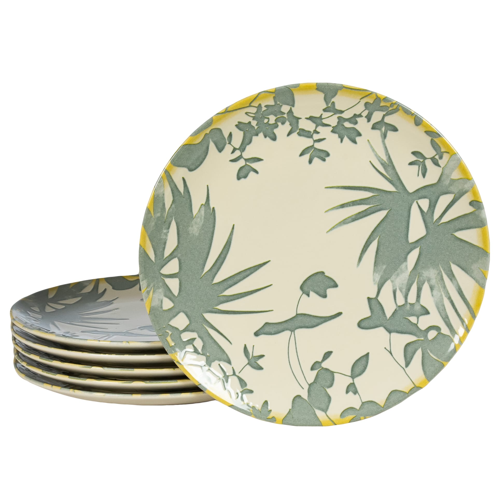 Set 6 farfurii intinse, 26 cm, Hawaii, Crem deschis cu frunze gri
