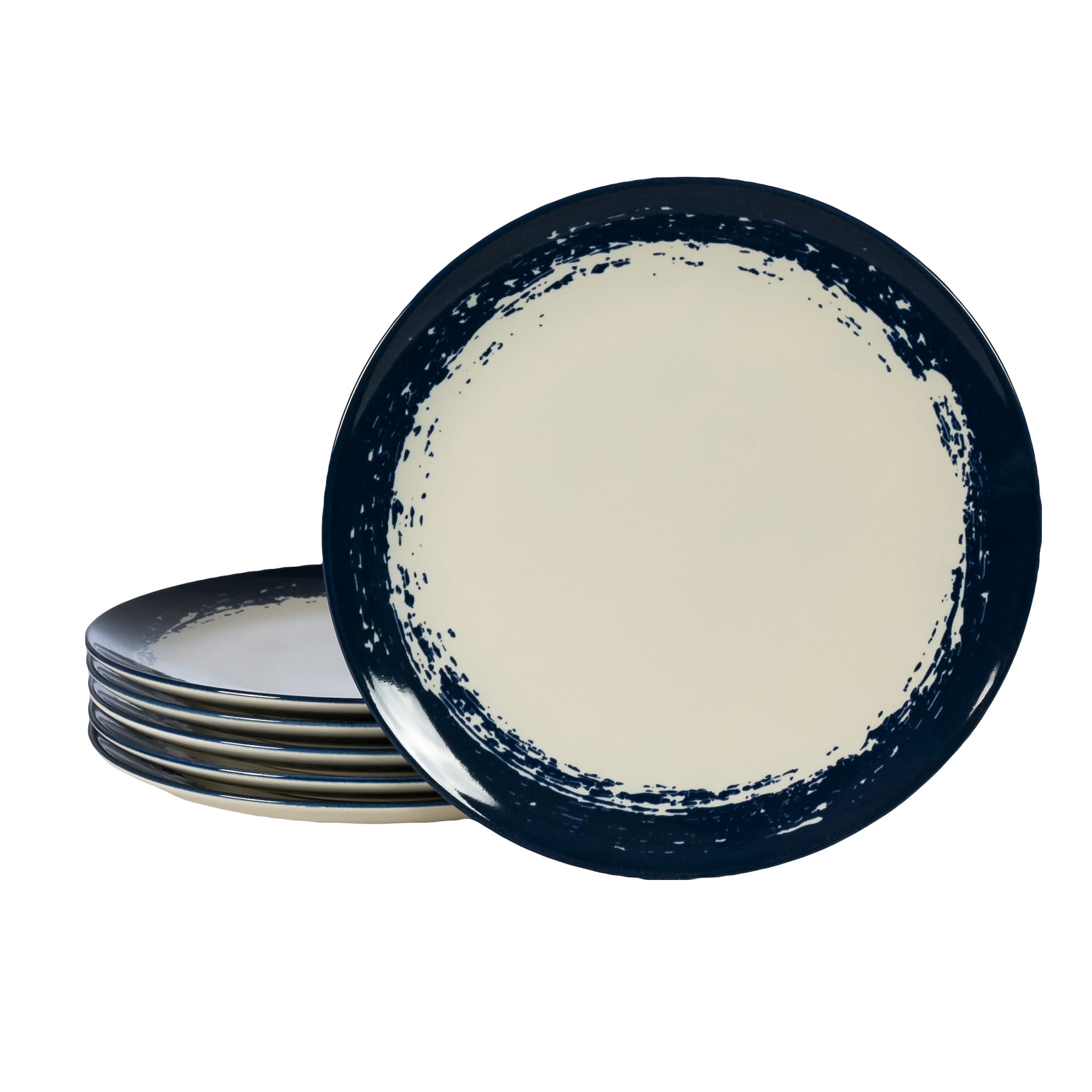 Set 6 farfurii intinsea, 26 cm, Maritim, Cesiro, Fabricat in Romania, Alb Ivoire cu bluemarin