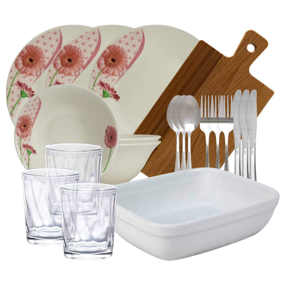 Fiecare element al acestui set complet pentru masa este atent selectat pentru a va oferi o experienta culinara si estetica de neuitat. Indiferent daca doriti sa pregatiti, sa serviti sau sa savurati mancaruri delicioase, acest set va adauga un plus de eleganta si rafinament oricarei mese.