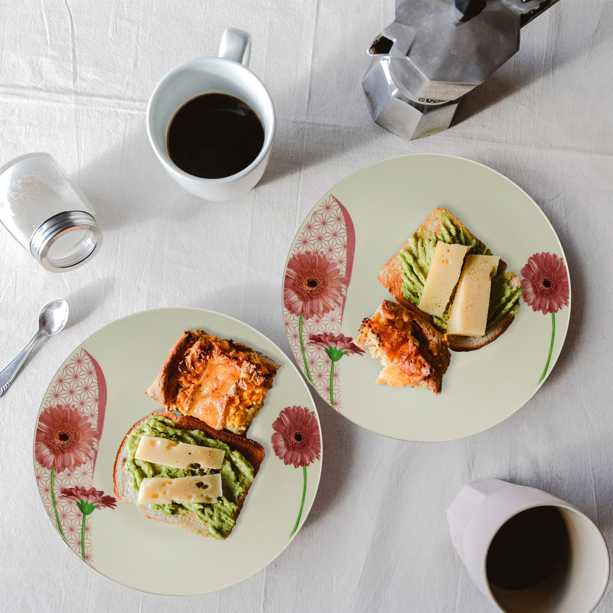 Set complet de masa, Pink Daisy, 20 piese, Portelan, Alb cu margareta