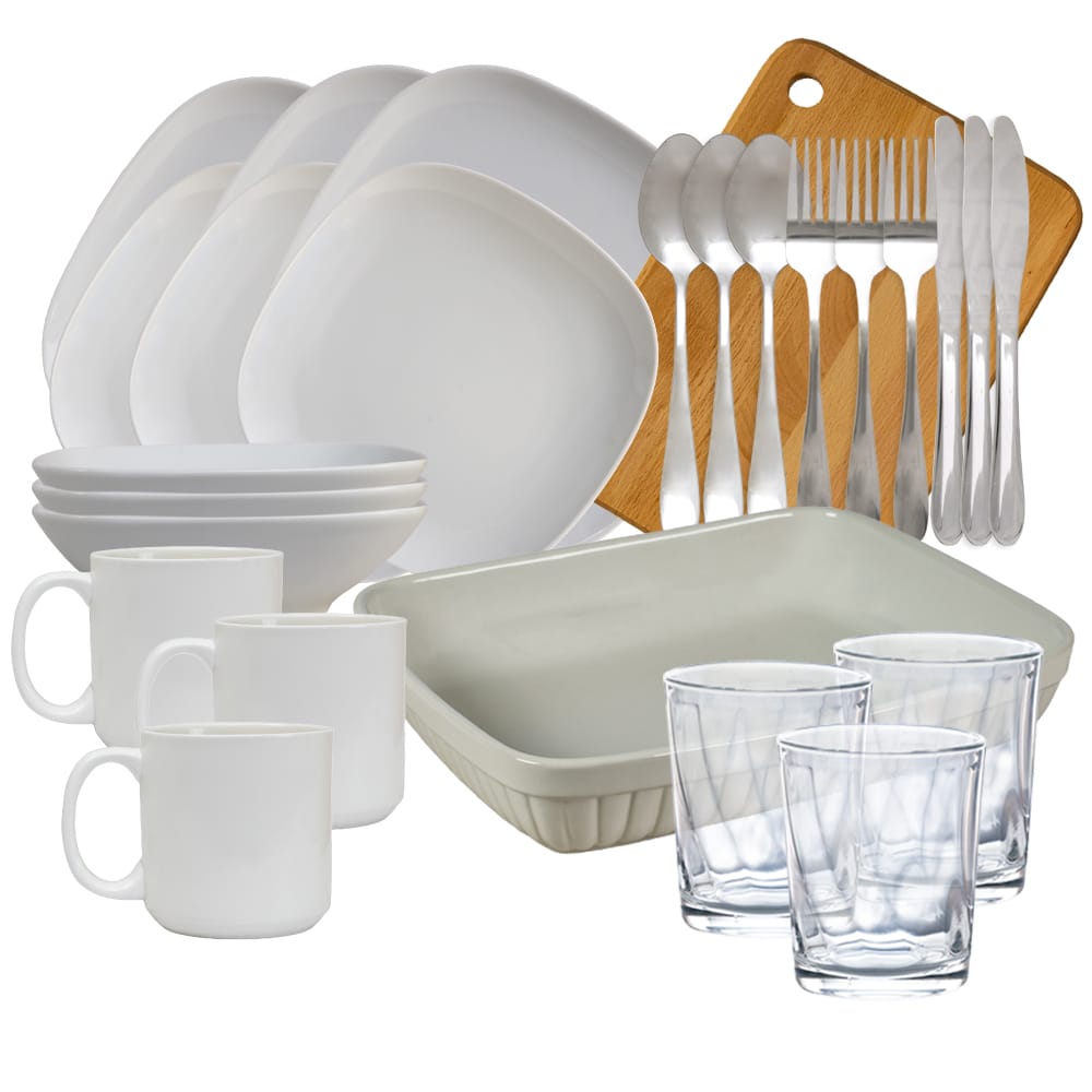 Set complet de masa, White, 26 piese, Portelan, Alb