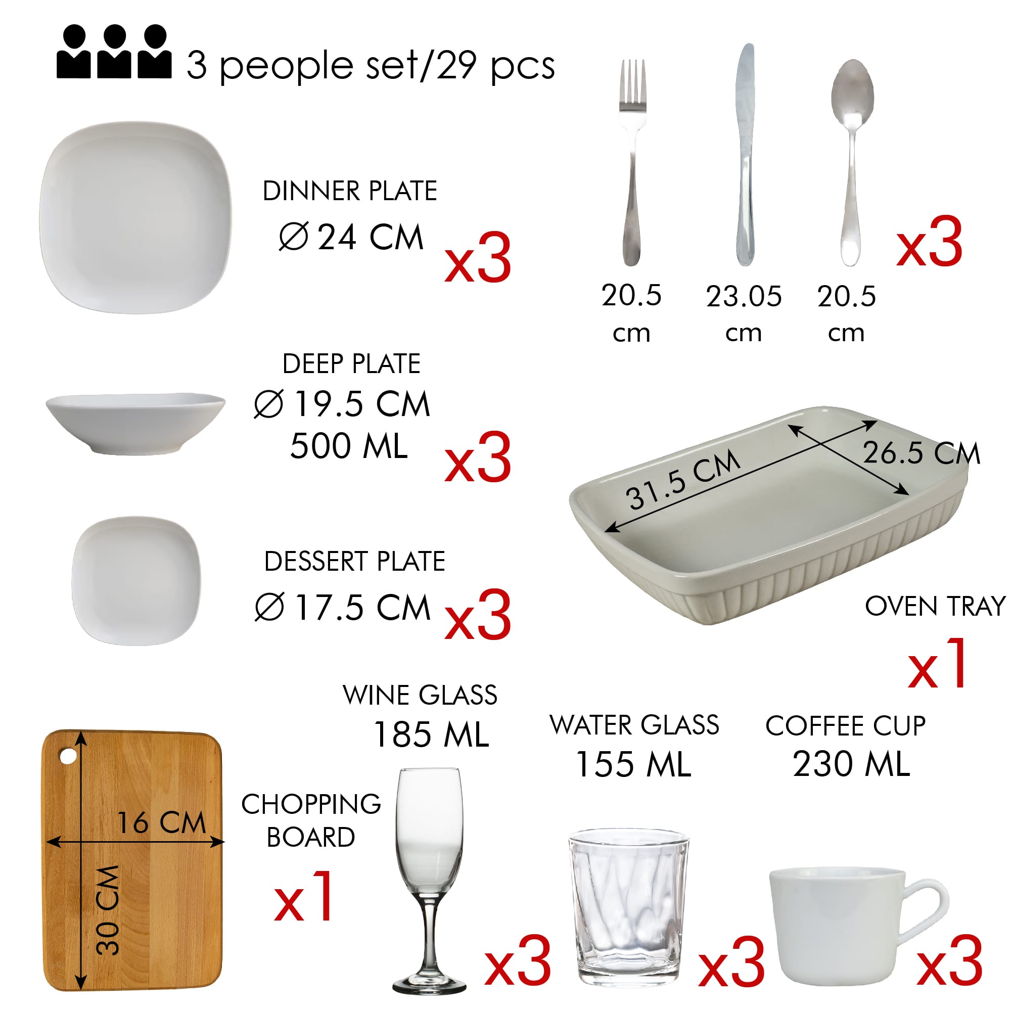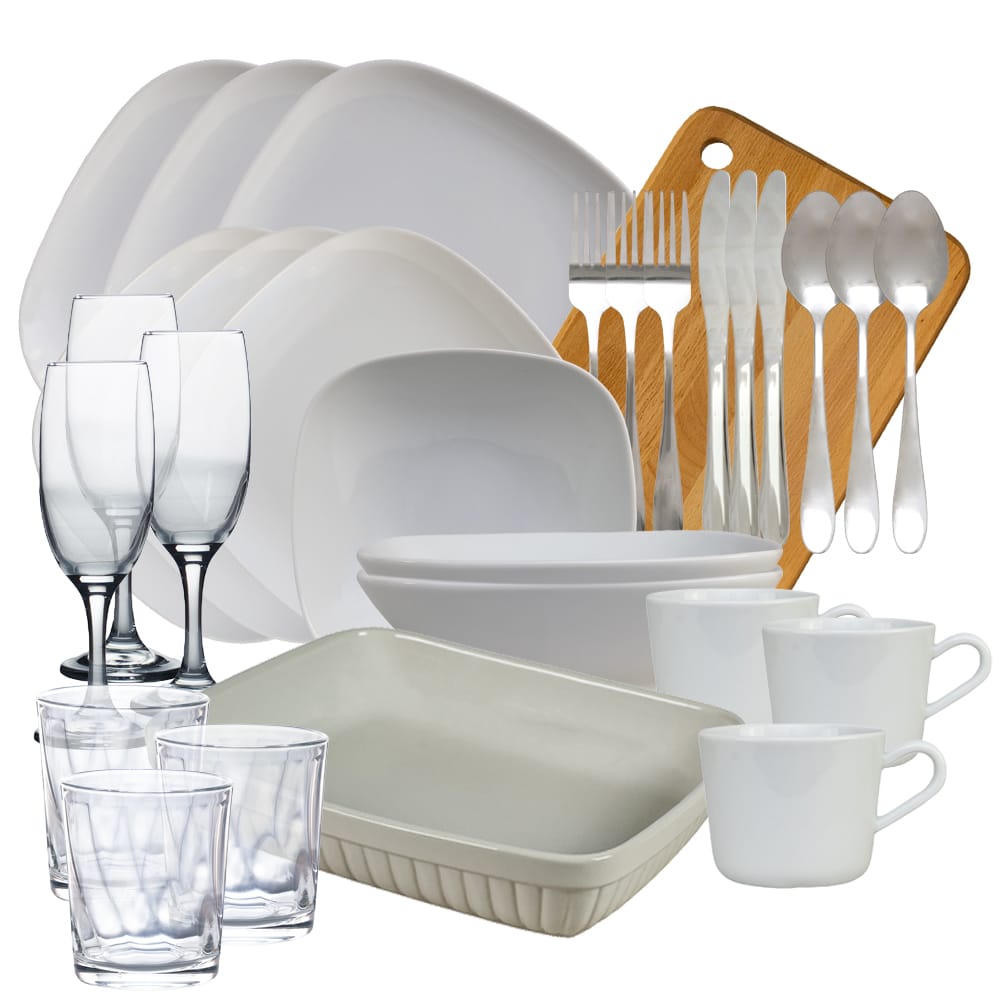 Set complet de masa, White, 29 piese, Portelan, Alb