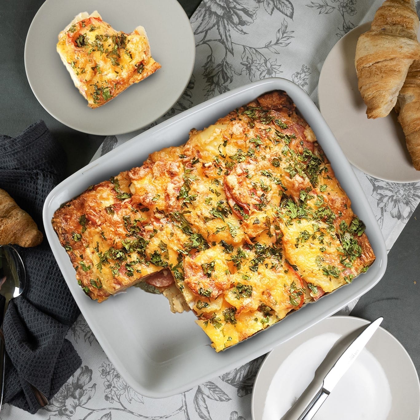 Vas termorezistent mare: Acest vas termorezistent de dimensiuni generoase este ideal pentru gatitul si servirea mancarurilor in cuptor sau pe aragaz. Puteti pregati fripturi suculente, lasagna delicioasa sau orice alt preparat preferat, iar vasul va mentine caldura si aroma pentru o perioada mai lunga de timp.