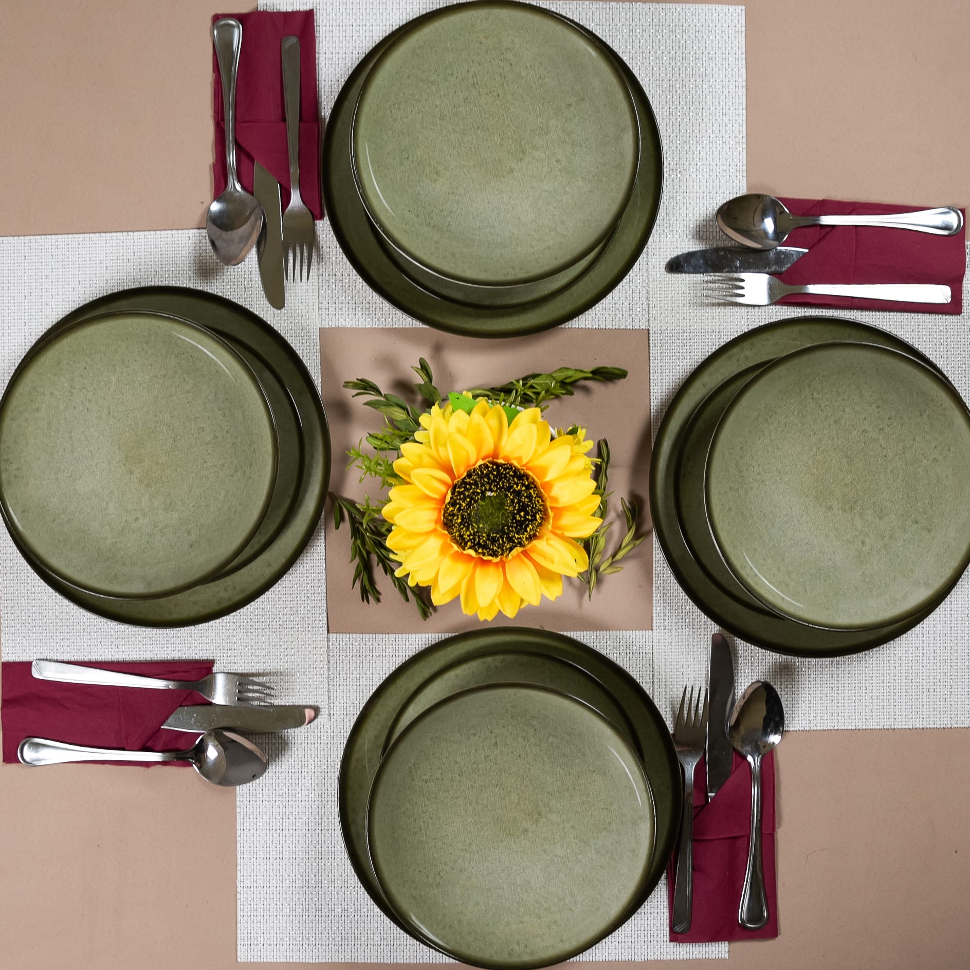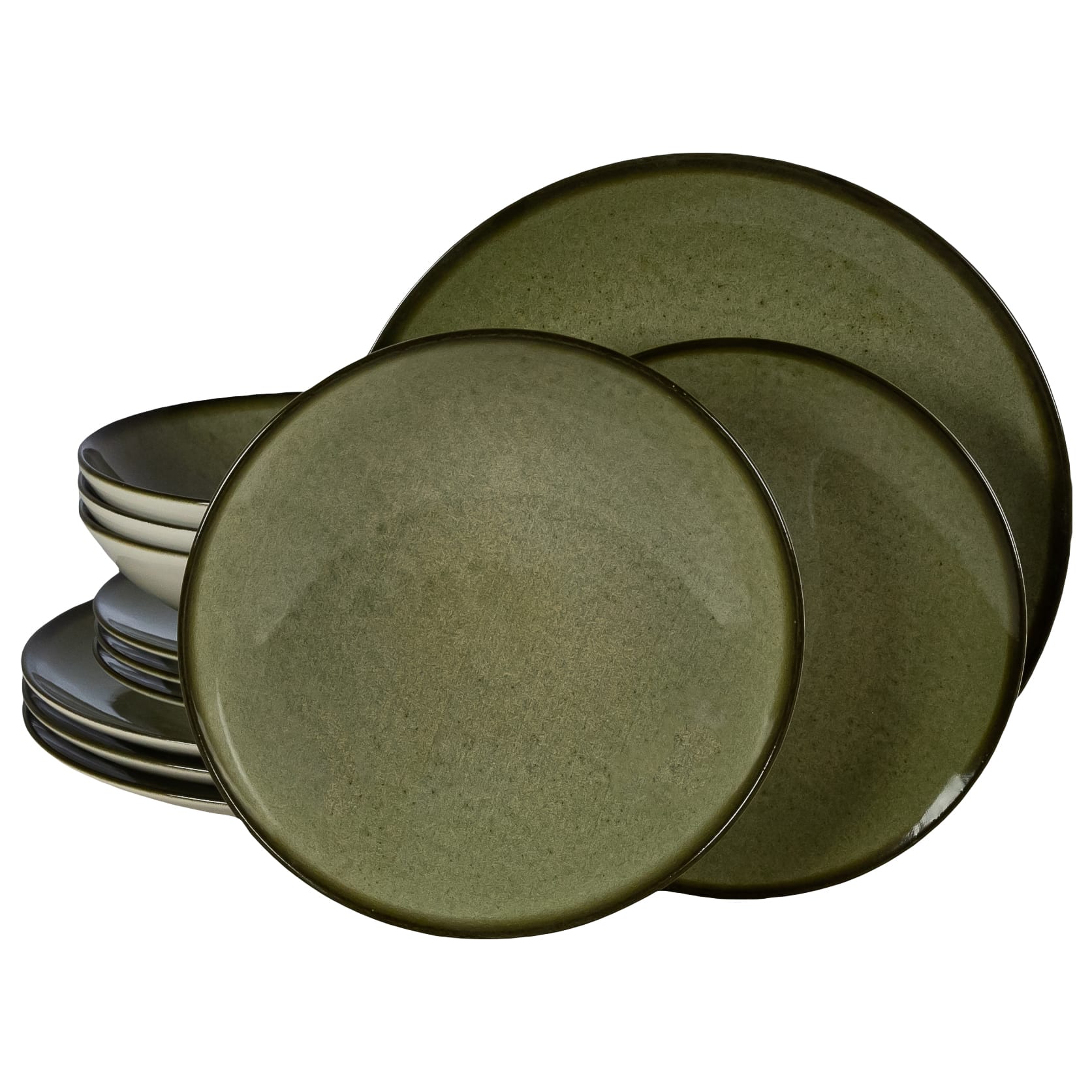 Set Complet Serviciu De Masa, Earth Green, 12 piese, Cesiro, Alb Ivoire cu verde