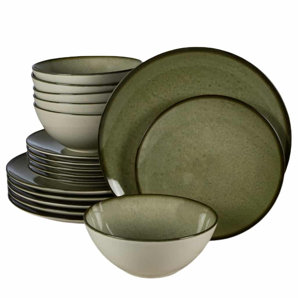 Set farfurii 18 piese, 6 persoane, Earth Green, Alb Ivoire lucios cu verde