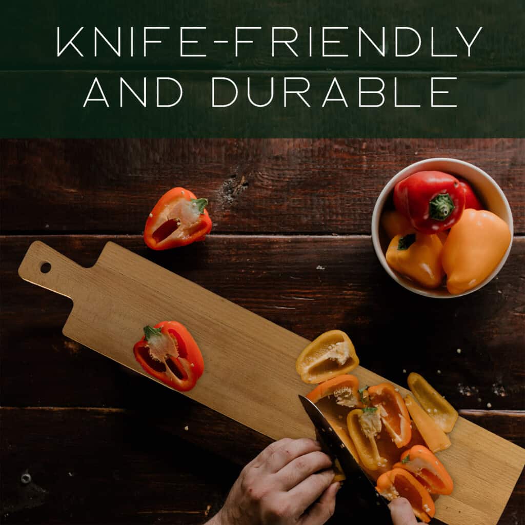 Tocator lemn cu maner 650x125x15 mm, Maro natur